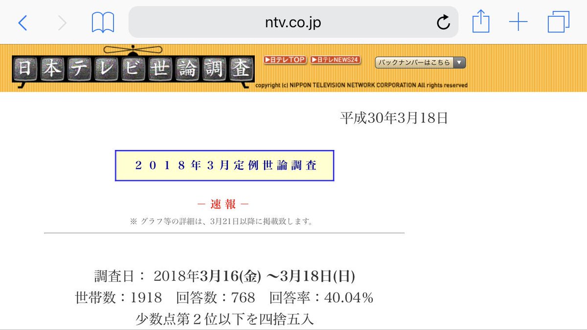 日テレ世論調査ね…2割台だ!さぁ大変だ―(棒) pic.twitter.com/mpCVGoeU6V