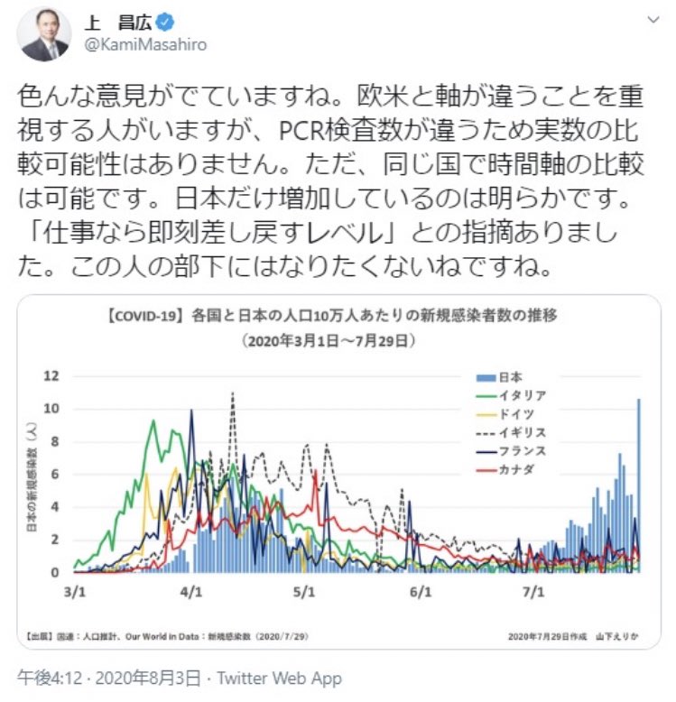 貴方達の言う「科学者」ってインチキグラフで印象操作した上昌広でしょうw https://twitter.com/shiikazuo/status/1326840745009967104 … pic.twitter.com/1tql4BUB6F