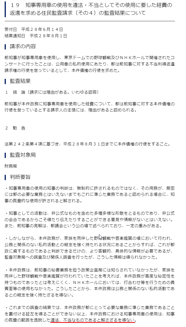舛添監査と比較すれば、今回がずっと踏み込んだ不当認定だとわかる。