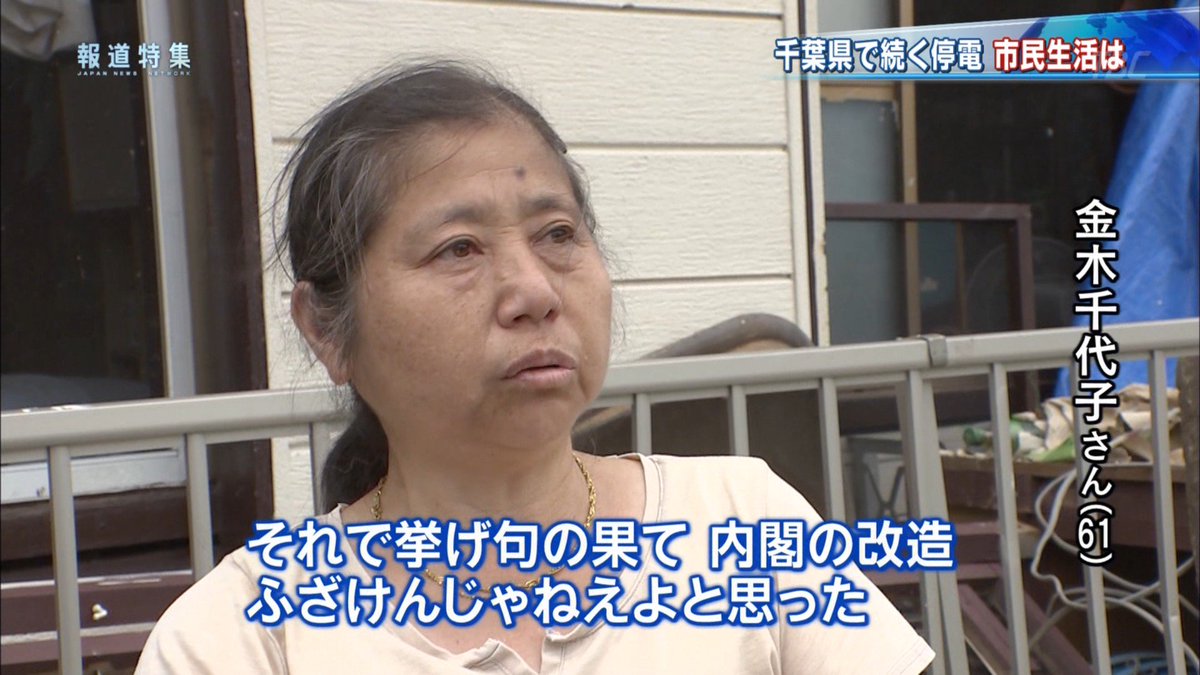 安倍晋三という人はつくづく「冷酷」な男だと思う。千葉はいまだ40万戸以上が停電中。すでに何人かの熱中症によるとみられる死者も出ているという。首相自らが千葉へ赴き対策の先頭に立つべき事態だ。だがそんなことはまるで気にせず内閣改造劇ではしゃいでいる。冷酷と言わずして何という?